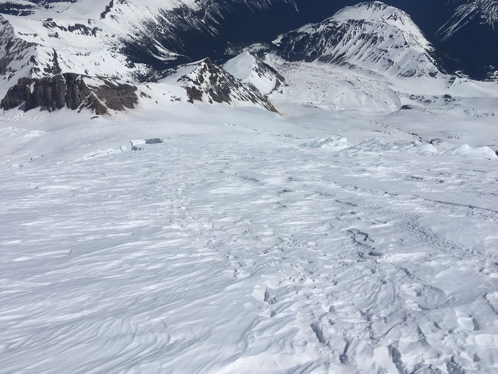 The Emmons Corridor route is holding a large amount of wind blown snow in the alpine meadow zone. This section of the route between 11,000' to 12,600' has unsupportable soft snow with boot top penetration. Getting from the Corridor to the Alpine Meadow is not straightforward as it has been in the past. There are different options, but all of them with unique route finding. The traditional snow passage leading off the corridor to the meadow is a mix of large seracs, sloping blue ice, and drifts of deposited snow. Use caution when passing through this zone as surface conditions warm. The corridor from 11,000' down to Camp Schurman is generally smooth with minor crevasse hazard.